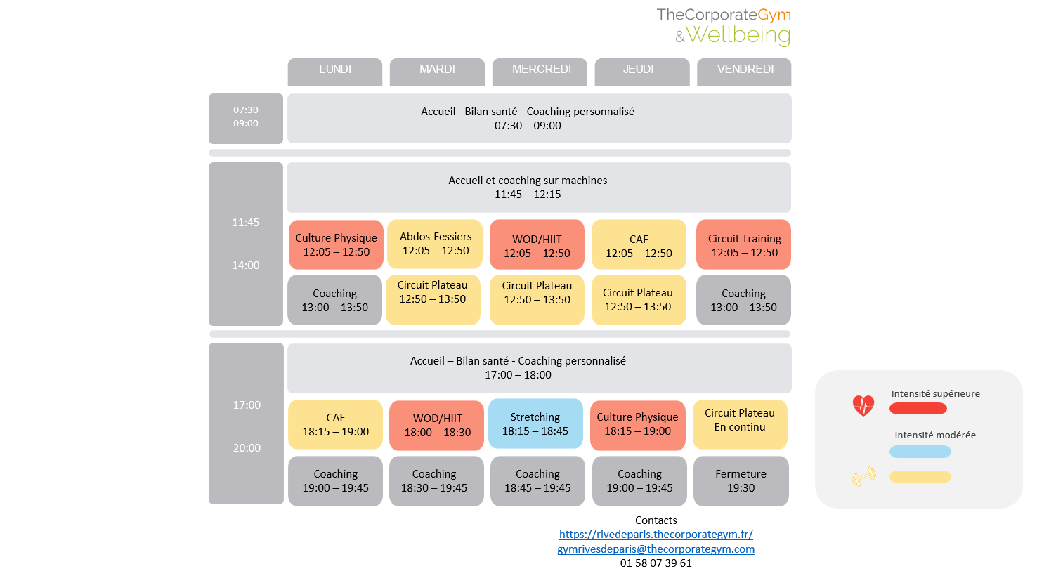 - Spécial dos : Cours de renforcement musculaire ciblé sur une zone musculaire.